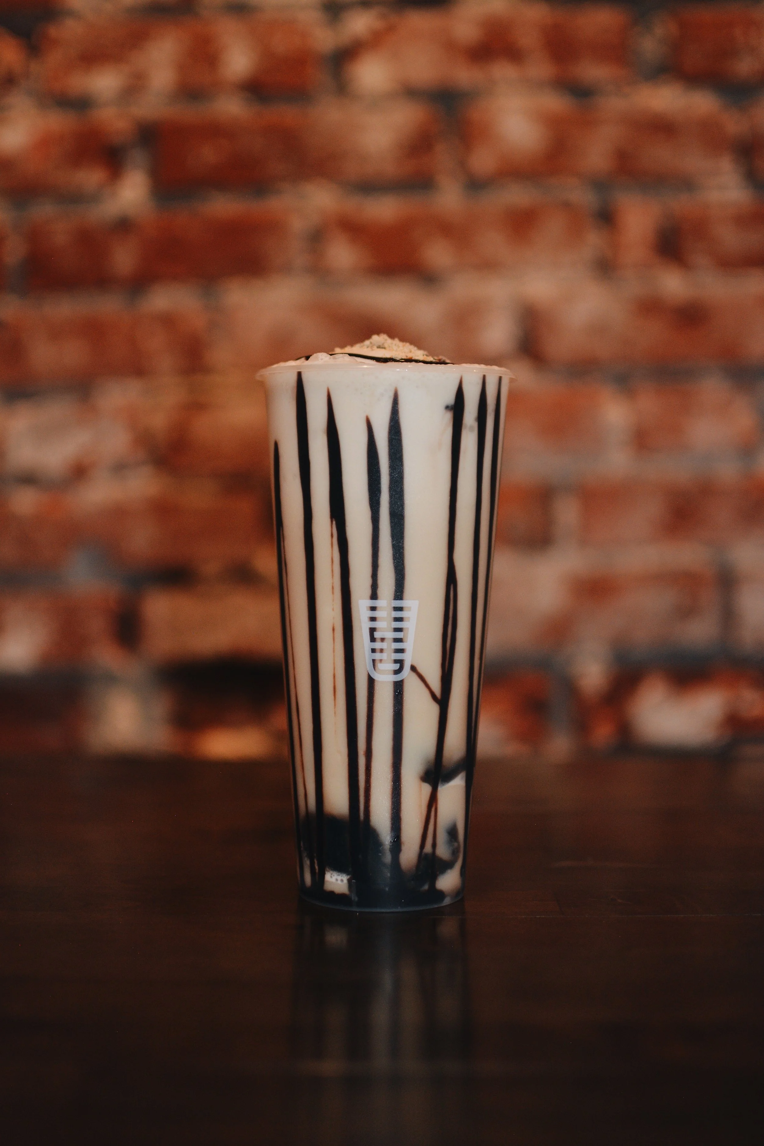nutella coffee frappe, warm chewy boba, house crème, chocolate
